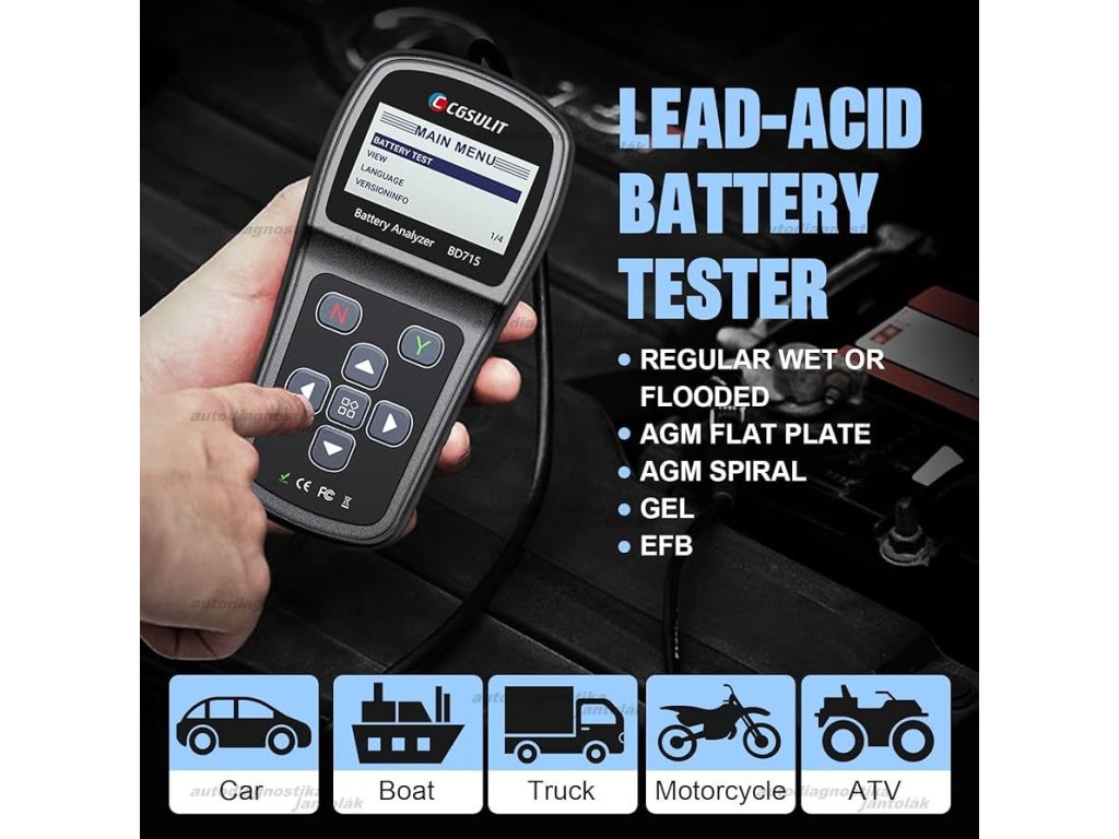 Tester batérií CGSULIT BD715 je jednoduchý samostatný tester batérii - len pripojíte kliešte a meriate. Zariadenie ponúka jednoduché a rýchle testovanie pre všetky bežné systémy 12V aj 24V. Batérie kontroluje samostatne (po 12V celkoch), dobíjanie a štartovanie kontroluje so systémovým napätím (12V, alebo 24V).