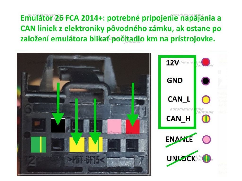 - 18. FCA TYP1 s konektorom - emulátor určený pre vozidlá 2011-2013, napríklad modely Jeep Grand Cherokee 2011-2013 a Dodge Challenger 2012. Inštalácia Plug and Start = jednoducho zacvaknete do emulátora konektor a bez akéhokoľvek spájkovania / programovania máte chybný zámok volantu nahradený (video ukážka). Tento typ generuje aj zvuk odomknutia.
