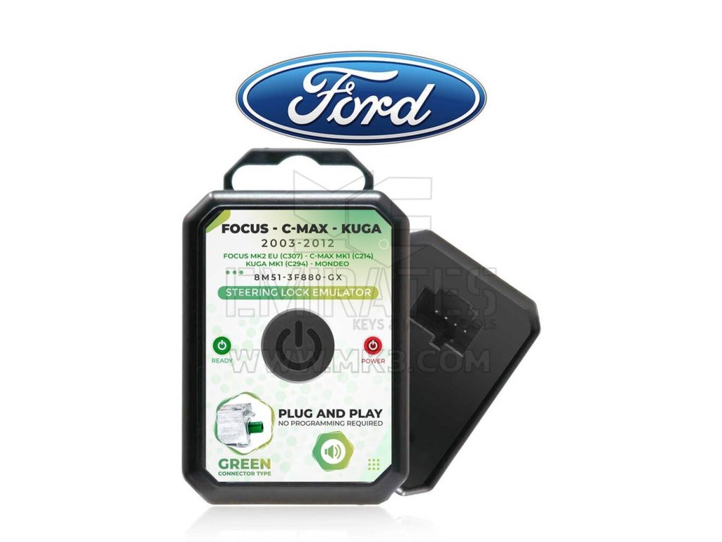 - 32. FORD TYP3 - emulátor pre vozidlá Focus, C-MAX, KUGA, MONDEO... so starším typom komunikácie, ročníky cca 2003-2012, konektor na zámku by mal mať ZELENÚ farbu (napr. 8M51-3F880-GX). Emulátor ale fungoval aj na Mondeo MK4 so zámkom, kde bol čierny konektor (7G91-3F880). Inštalácia Plug and Start = jednoducho zacvaknete do emulátora konektor a bez akéhokoľvek spájkovania / programovania máte chybný zámok volantu nahradený. Tento typ generuje aj zvuk odomknutia.