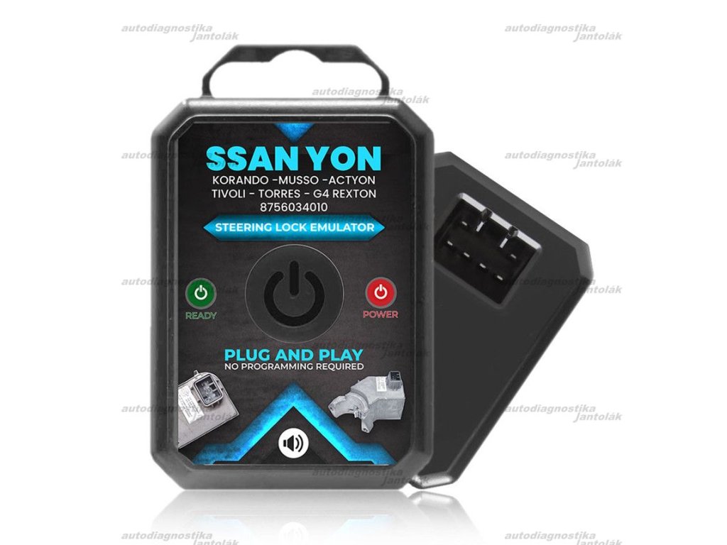 - 36. SsangYong - emulátor pre zámok označený 8756034010, používaný vo vozidlách: SsangYong Korando, Musso, Actyon, Tivoli, Torres, G4 Rexton. Inštalácia Plug and Start = jednoducho zacvaknete do emulátora konektor a bez akéhokoľvek spájkovania / programovania máte chybný zámok volantu nahradený. Tento typ generuje aj zvuk odomknutia.