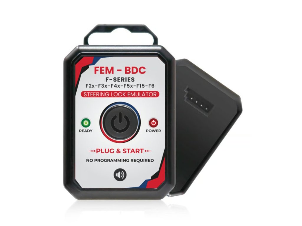 42. BMW/Mini F-SERIES FEM / BDC: emulátor pre vozidlá BMW a Mini Cooper, F séria, F2x, F3x, F15, F16, F4x, F5x. Inštalácia = jednoducho zacvaknete do emulátora konektor z vozidla, niekedy je potrebné ešte vymazať chyby + resetovať počítadlo chýb zámku volantu (funkciu podporuje napr. Launch a Autocom) (video ukážka).