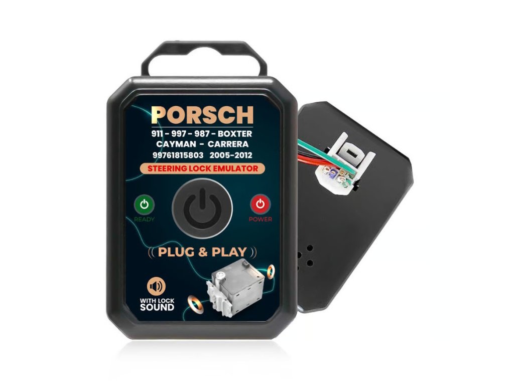 - 40 Porsche 2005-2012: emulátor pre vozidlá Porsche 911, 997, 987 Boxster, Cayman, Carrera 2005-2012, nahrádza zámok s označením 99761815803 (skontrolujte vo vozidle pred objednaním emulátora). Inštalácia Plug and Start = jednoducho zacvaknete do emulátora konektor a bez akéhokoľvek spájkovania / programovania máte chybný zámok volantu nahradený. Tento typ generuje aj zvuk odomknutia.