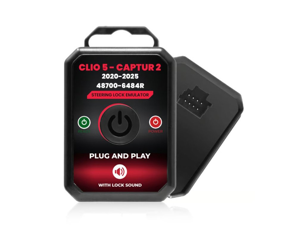 43. VW Audi Porsche 2008+: emulátor pre vozidlá VW Touareg 2011–2018, Audi Q5, A4 2008–2012, RS5 2010–2016, S4 2008–2012, S5 2011–2014, Porsche Panamera 2010–2016, Cayenne 2011–2018, Boxster 2019–2026, Cayman 2019–2026, 911 Carrera 2012–2016, GT4 2019–2026. Nahrádza zámky s označením 8K0905852 / 7PP905852 / 4h0905852 (skontrolujte vo vozidle pred objednaním emulátora). Inštalácia vyžaduje programovanie s použitím dát z pôvodného zámku, alebo ak je poškodený tak z BCM jednotky - stačí vyčítať a nahrať do pamäte, ktorá je v emulátore. Tento typ generuje aj zvuk odomknutia, do vozidla sa pripája vodičmi s pinmi (v balení). - 44. Renault Clio 5 Captur 2 2020-2025 - emulátor pre vozidlá Renault Arkana, Zoe, Clio 5 a Captur 2, modelové roky 2020-2025, nahrádza zámok s označením 48700-6484R (skontrolujte vo vozidle pred objednaním emulátora). Inštalácia Plug and Start = jednoducho zacvaknete do emulátora konektor a bez akéhokoľvek spájkovania / programovania máte chybný zámok volantu nahradený. Tento typ generuje aj zvuk odomknutia.