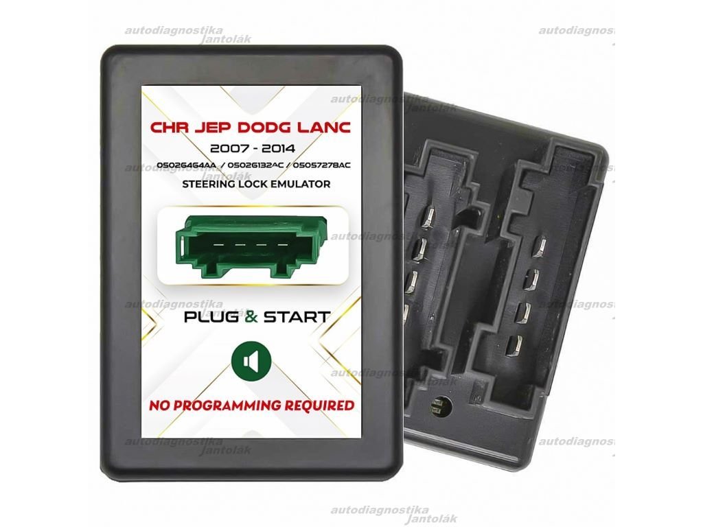 - 27. FCA 2007-2014 s konektorom - emulátor určený pre vozidlá Jeep Chrysler Dodge Fiat približne z rokov 2007-2014 so zámkami volantu: 5026132AC, 5026464AA, 5057278AC. Inštalácia Plug and Start = jednoducho zacvaknete do emulátora konektor a bez akéhokoľvek spájkovania / programovania máte chybný zámok volantu nahradený. Tento typ generuje aj zvuk odomknutia.