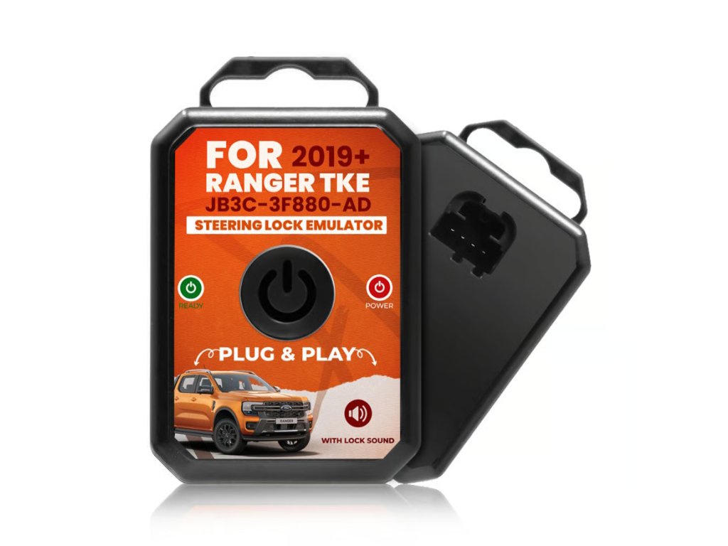 - 38. Ford Ranger 2019+: emulátor pre vozidlá Ford Ranger a Figo ročník 2019+, nahrádza zámok s označením JB3C-3F880-AD (skontrolujte vo vozidle pred objednaním emulátora). Inštalácia Plug and Start = jednoducho zacvaknete do emulátora konektor a bez akéhokoľvek spájkovania / programovania máte chybný zámok volantu nahradený. Tento typ generuje aj zvuk odomknutia.