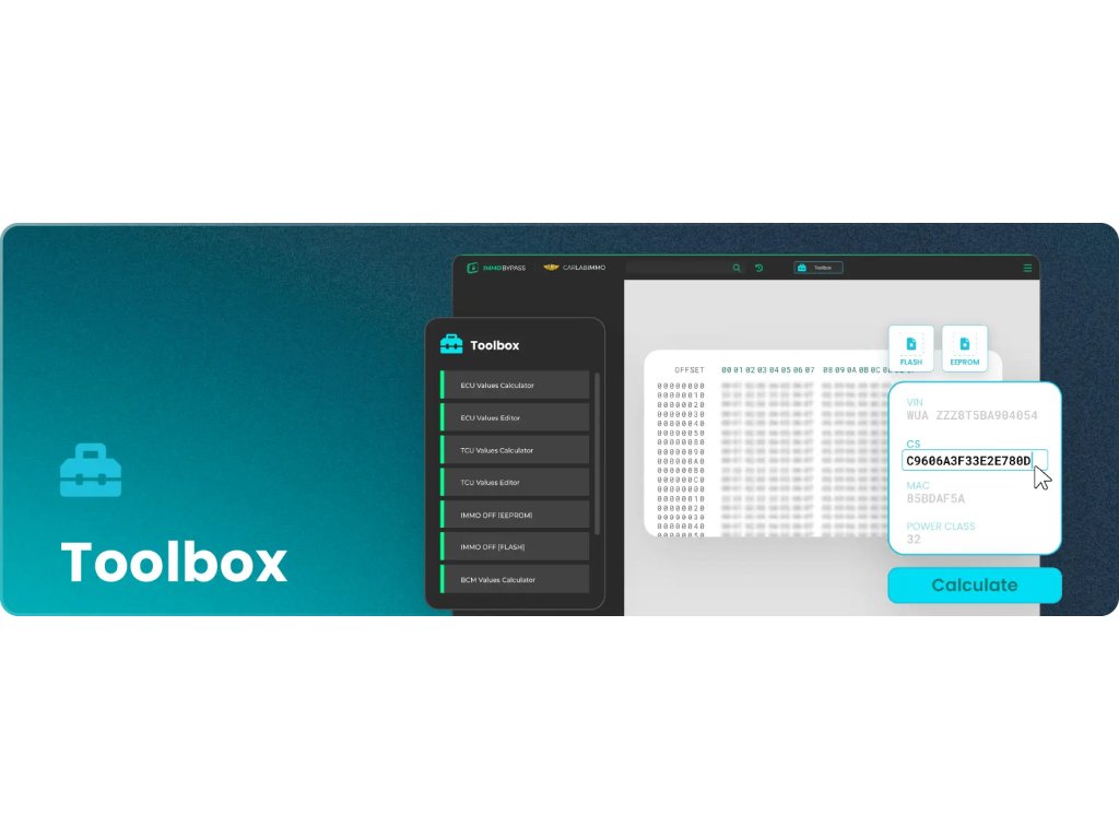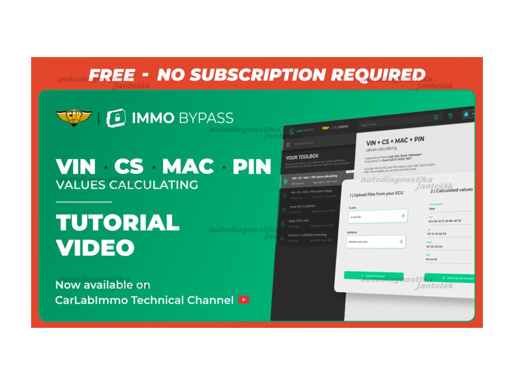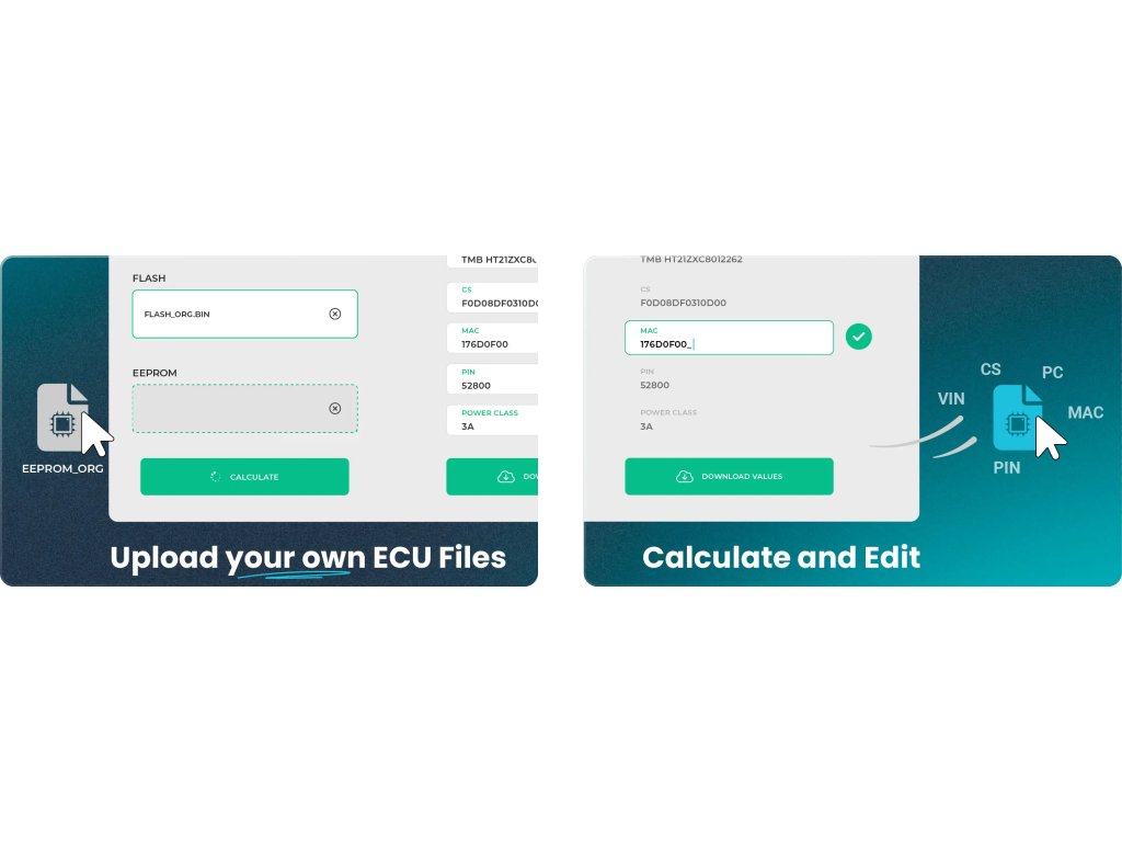 Po registrácii účtu budete mať okamžite dostupnú funkciu - generovanie VIN/CS/MAC/PIN z EEPROM a FLASH jednotiek EDC17, MED17 a ME17 (VW, Škoda, Audi, Seat).