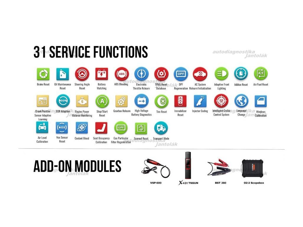 - Možnosť dokúpiť tester batérií BST360, TPMS čítačku, videoskop VSP-600