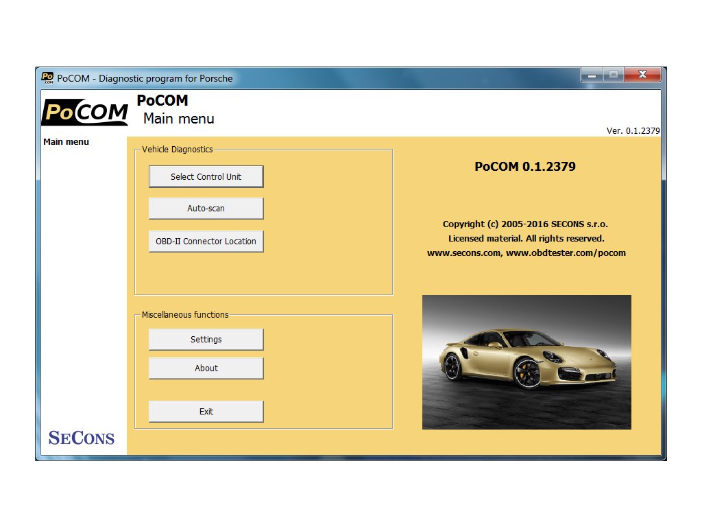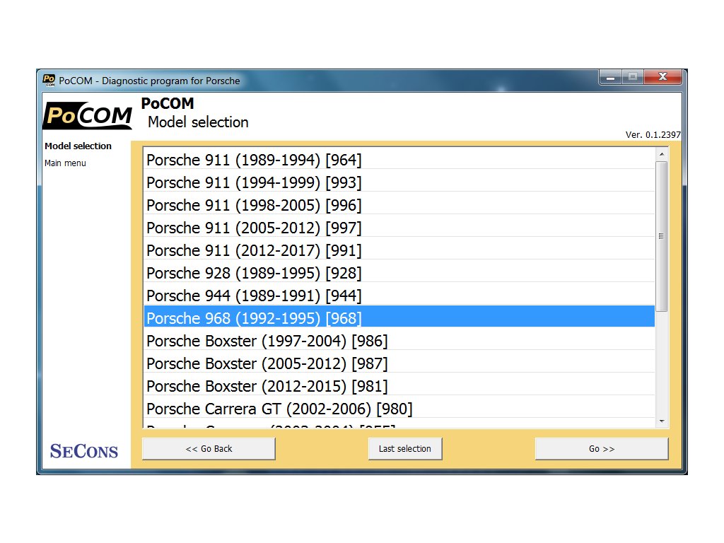 POCOM / PO-COM je diagnostika značky Porsche. Do CZ jazyka je preložená časť užívateľského rozhrania a popisov. Zariadenie vyžaduje základy anglického jazyka.