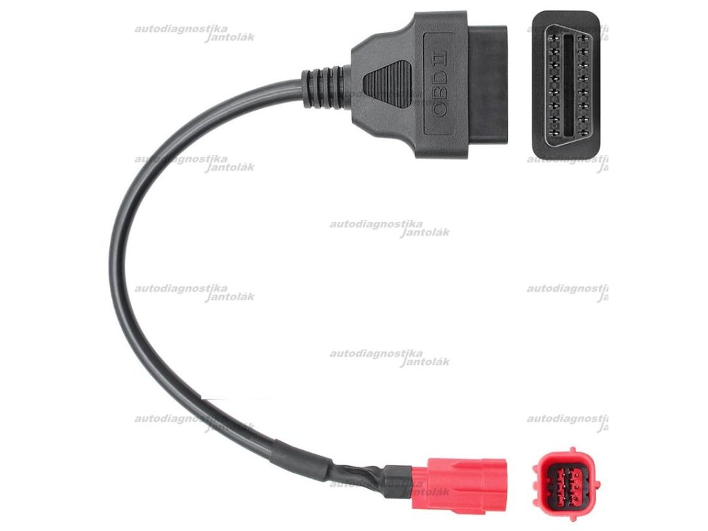 Redukcia pre motocykle s normou EURO5 a štandardným 6 pinovým diagnostickým konektorom (skontrolujte podľa fotky). Pripojenie na klasický OBD2 konektor, novšie motocykle je možné diagnostikovať cez bežnú OBD2 normu (napr. univerzálnou diagnostikou, alebo cez ELM327). Táto redukcia obsahuje spojenie pre K aj CAN linky podľa normy ISO/DIS 19689. Používa sa napríklad s novými európskymi modelmi Moto Guzzi, Piaggio Vespa, 2019 Guzzi V85TT...