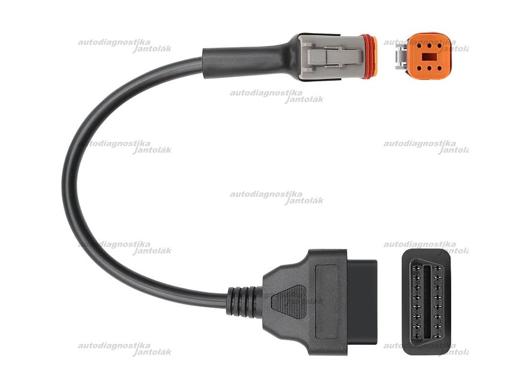 Redukcia pre motocykle Harley Davidson so 6 pinovým diagnostickým konektorom. Pripojenie na klasický OBD2 konektor, novšie motocykle je možné diagnostikovať cez bežnú OBD2 normu (napr. univerzálnou diagnostikou, alebo cez ELM327).