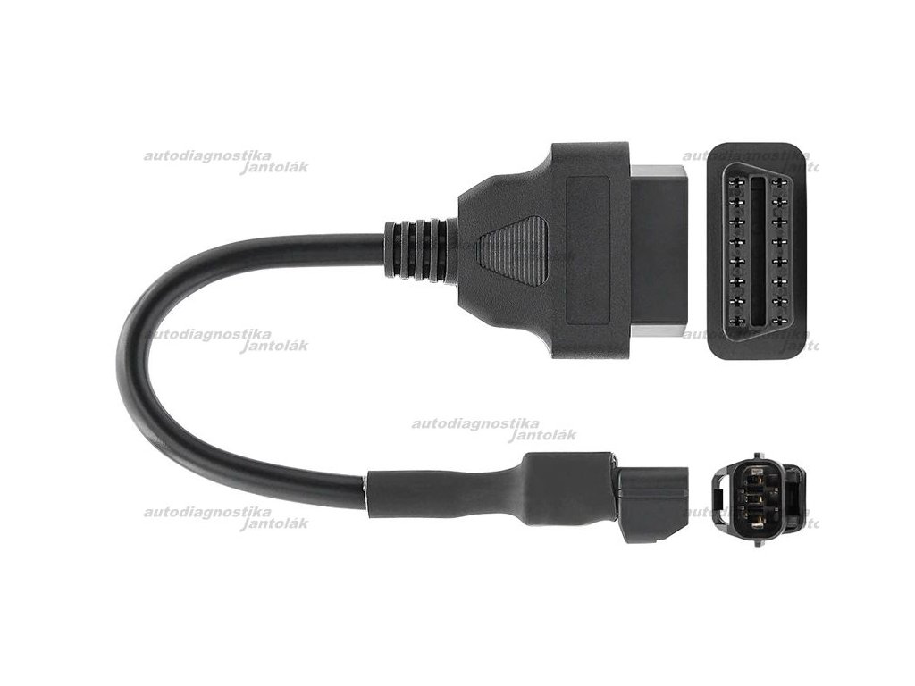 Redukcia pre motocykle Kymco s 3-pinovým diagnostickým konektorom. Pripojenie na klasický OBD2 konektor, novšie motocykle je možné diagnostikovať cez bežnú OBD2 normu (napr. univerzálnou diagnostikou, alebo cez ELM327).