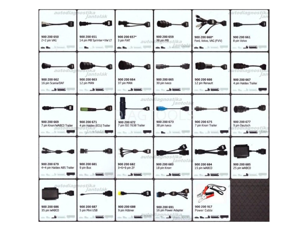 W074063003 OBD cable bundle Trucks (osobné, nákladné vozidlá) 1355EUR, redukcie v sade: 650, 651, 657, 659, 660-666, 673, 677, 682-686, 691, 917 a kufrík 279.