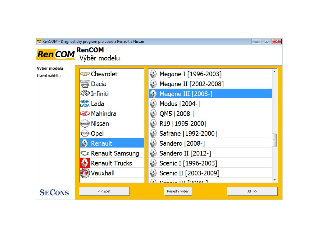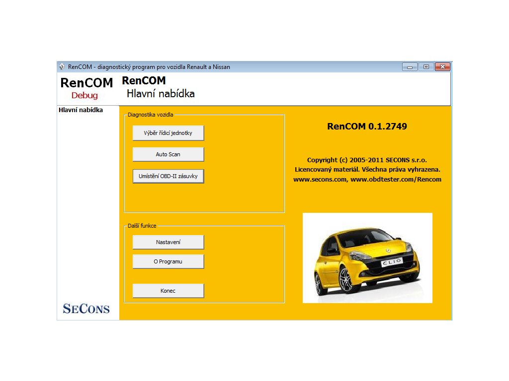 RENCOM / REN-COM je diagnostika značiek Renault a kompatibilných vozidiel (Dacia, Nissan, Infinity...). Do CZ jazyka je preložená časť užívateľského rozhrania. Zariadenie vyžaduje ovládanie základov anglického jazyka.