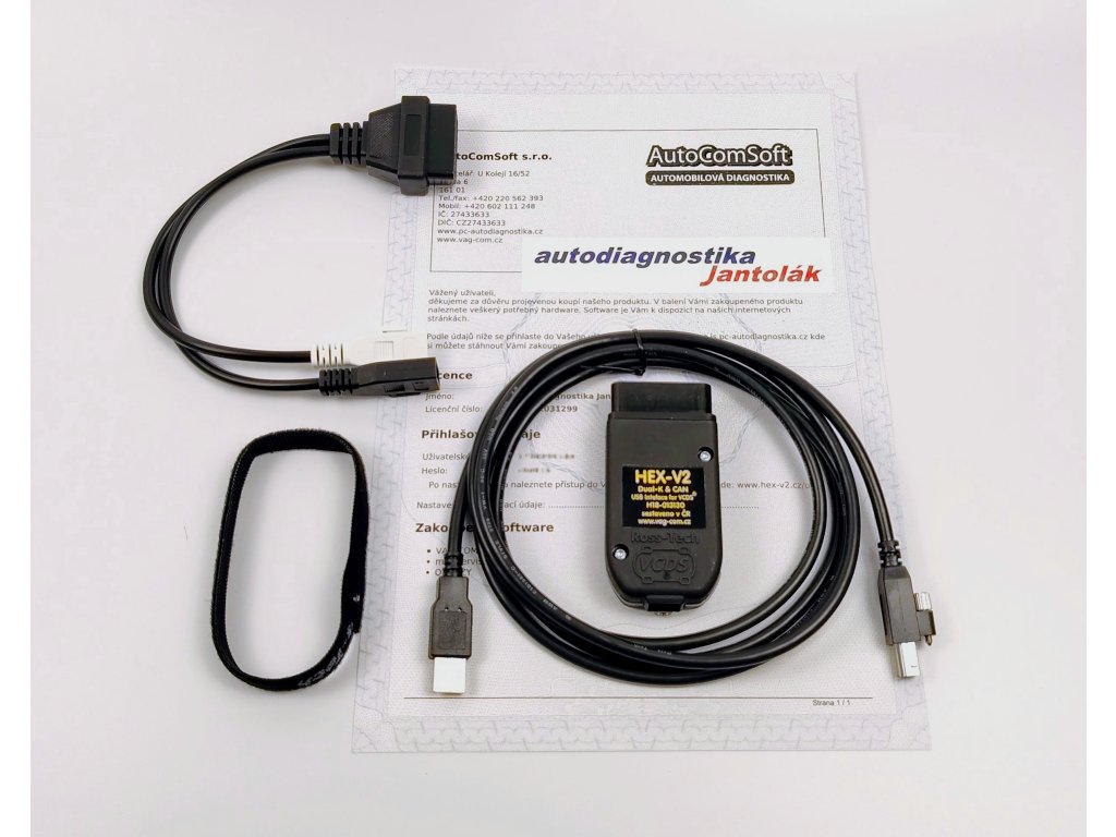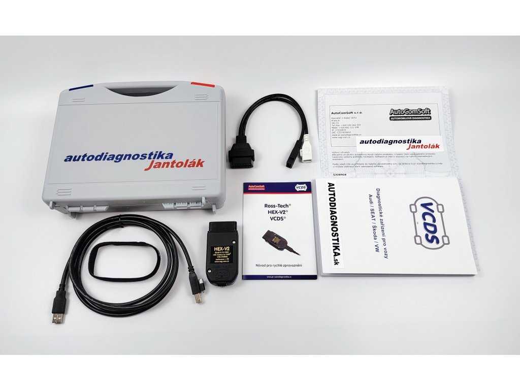 COMFORT 2 USB: diagnostické zariadenie Ross-Tech HEX-V2 USB, najnovší program VCDS CZ s licenciou MAX a 1 rokom bezplatných aktualizácií, AKCIA - doživotne bezplatné aktualizácie, redukcia VW/Audi 2+2pin, kódovane funkcií, VIS Online + Online služby, tlačená kniha VCDS, kufrík