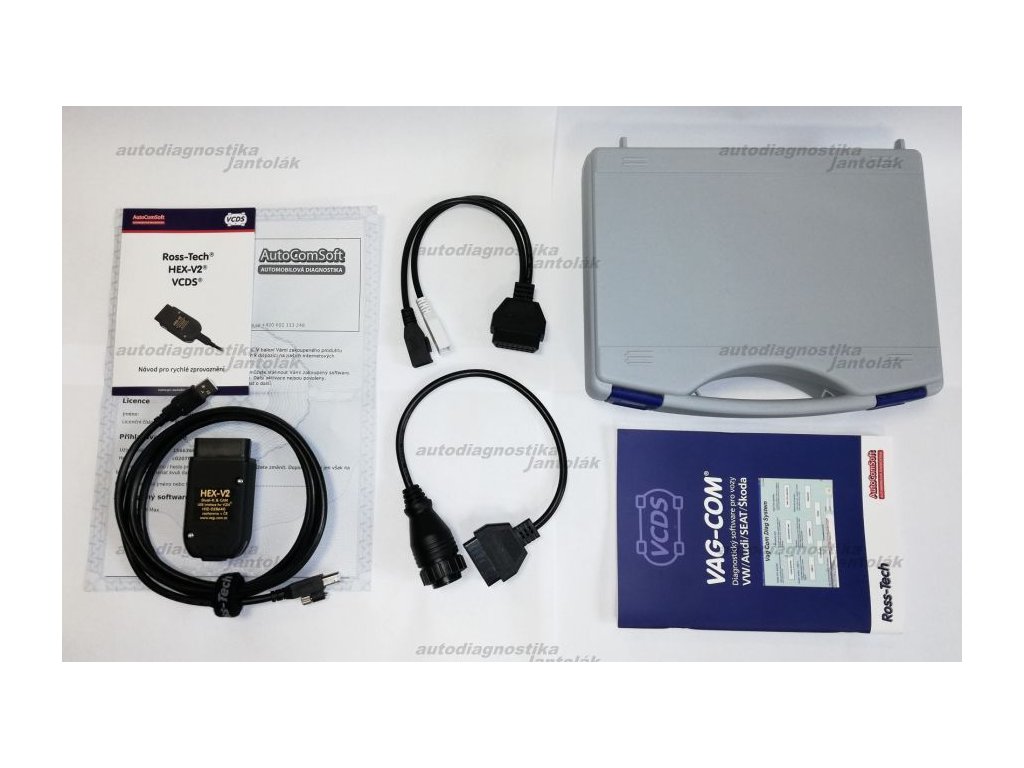 COMFORT USB: diagnostické zariadenie Ross-Tech HEX-V2 USB, najnovší program VCDS CZ s licenciou MAX a 1 rokom bezplatných aktualizácií, redukcia VW/Audi 2+2pin, kódovane funkcií, VIS Online + Online služby