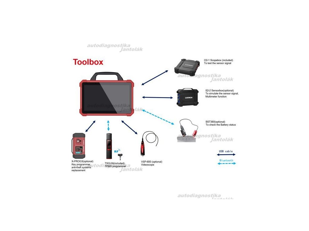 - V sade FULL je navyše redukcia BMW+MB, osciloskop+príslušenstvo, TPMS čítačka (TSGUN) a 4 nové TPMS snímače